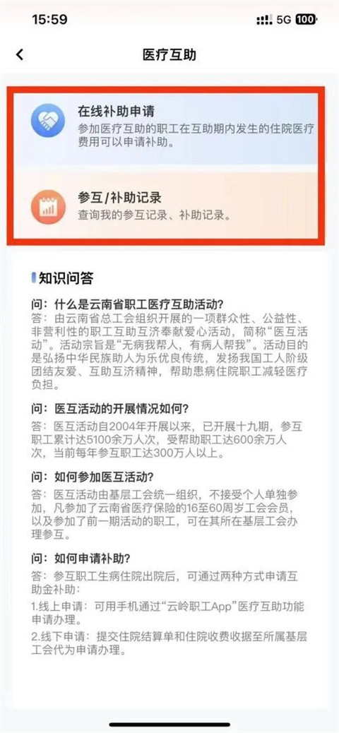 3、在医疗互助区申请补助,还能查到自己参加互助和补助的记录。