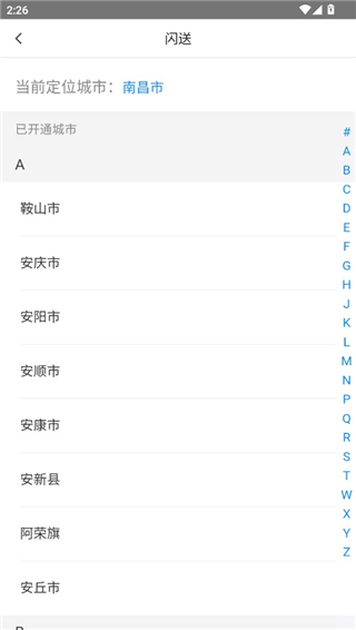 3、选择城市,软件会自动定位城市,当然也可以自己选择城市