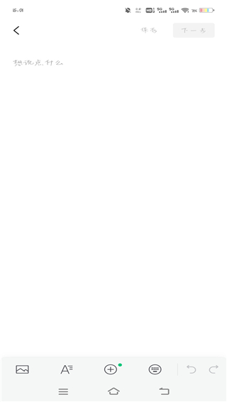 3、在编辑页面中输入文章的内容,输入好内容之后可以点击保存按键,等到下一次继续输入,完成之后点击下一步
