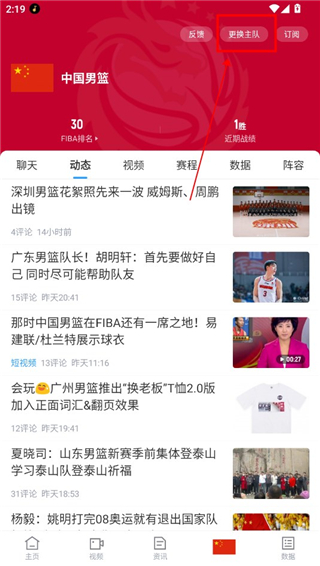4、进入之后可以查看各种与球队有关的资讯,也可以点击右上角切换球队