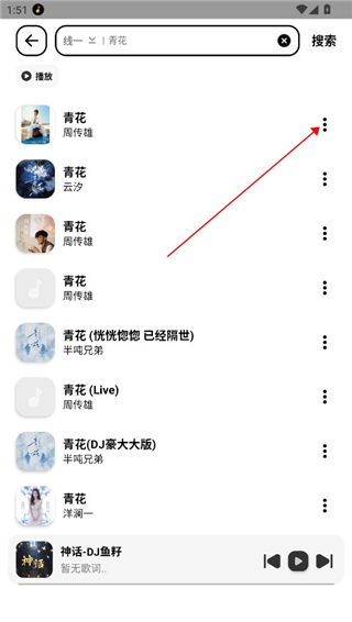 1、首先进入软件,我们可以通过上方的搜索功能来寻找歌曲,小编以青花为例
