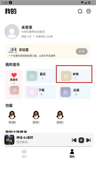 3、来到我的页面,在这里找到本地功能,点击进入,刚刚下载的歌曲就在这里了