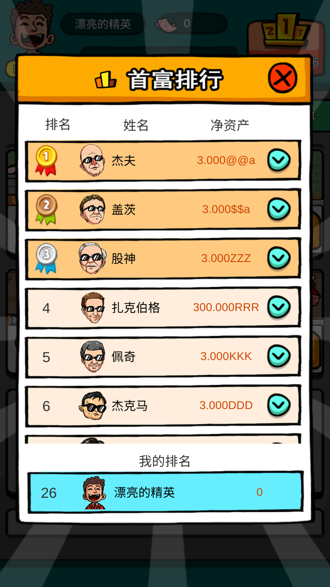 7、通过不断的赚钱。你在首富排行榜上的名次也将不断提升。