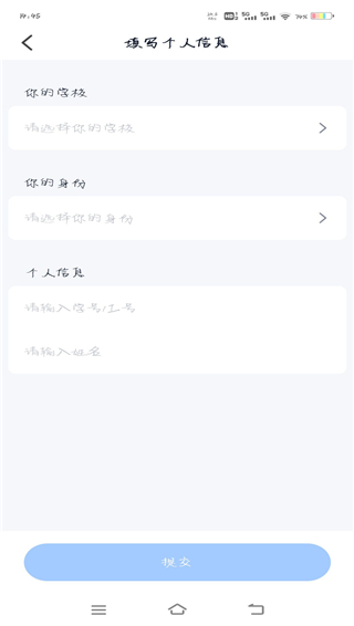 2、填写个人信息,选择学校,身份,并填入学号/工号和姓名,提交之后即可使用