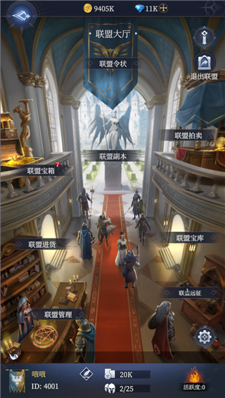 1. 在联盟中有诸多功能可以使用,点击任意功能入口即可进入。2. 通过每日活跃、联盟副本等活动可以获得个人联盟贡献,同时会为所在联盟增加联盟货币。