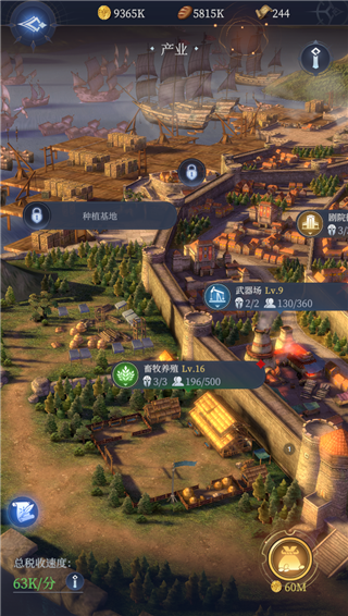 3. 各个城镇区域拥有各自的产业发展等级,通过提升产业发展等级可以提升产业税收速度。
