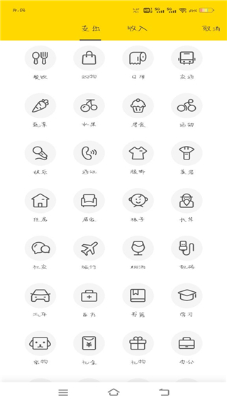 3、点击记账的类型,并在下方输入金额和备注,点击完成