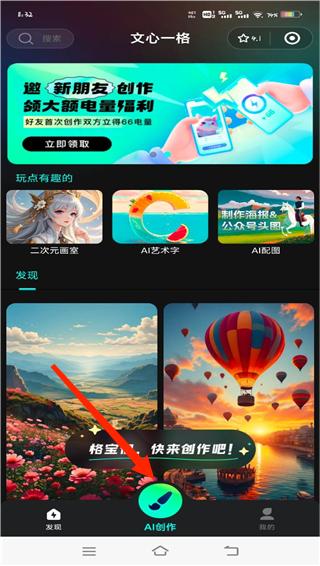 1、首先打开软件,这里会为用户带来众多AI画作,点击下方按键开始创作