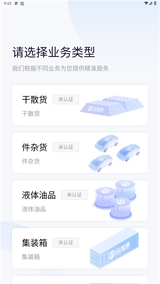 3、随后根据你的身份选择业务类型,其中有干散货、件杂货等