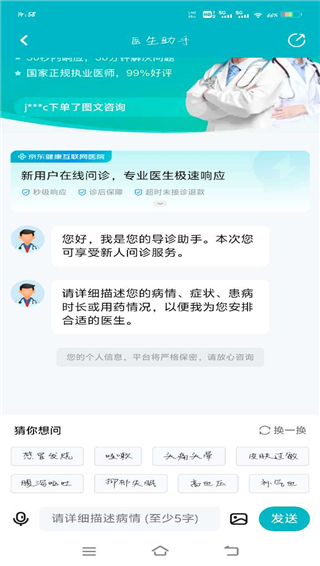 3、填写个人信息,然后医生助手会自动匹配医生,用户可以选择其中一位进行问诊