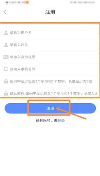 4、最后输入用户们、姓名、身份证等信息后,点击注册即可完成注册