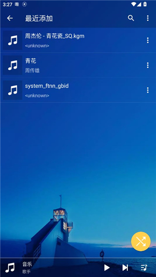 4、回到首页,在这里点击最近添加,可以在这里看到扫描到的歌曲,点击即可播放