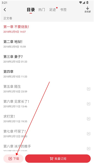 4、在目录页面中,点击左下角的缓存即可下载已购章节