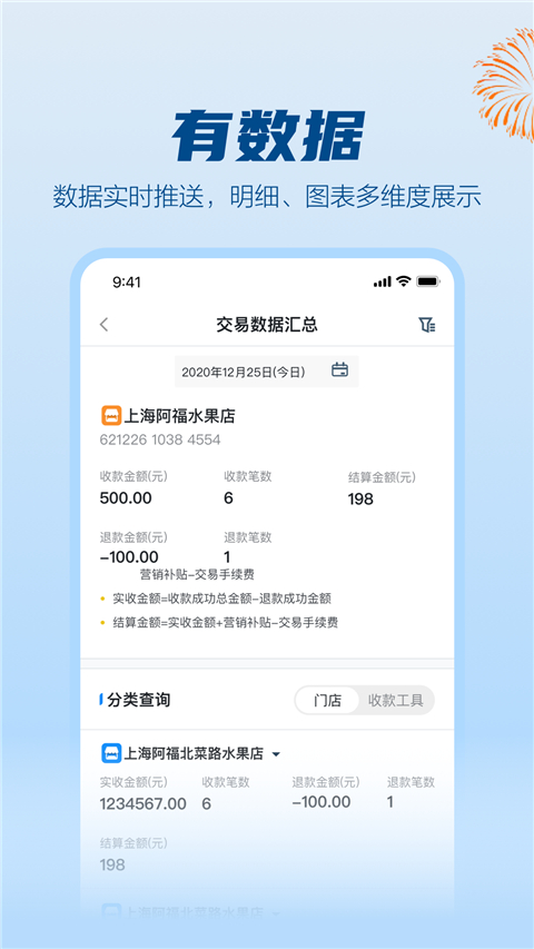 1.商户关联:多个商户一步关联,一个账号查看所有2.商户升级:交易额度提升,生意更兴隆