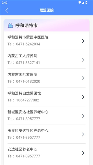 2、在联盟医院页面中,这里根据地区列举出了相关的医院