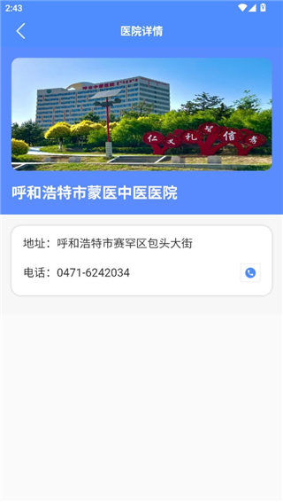 3、点击进入详情页面,可以查看到医院的地址与电话,让你可以直接联系相关医院