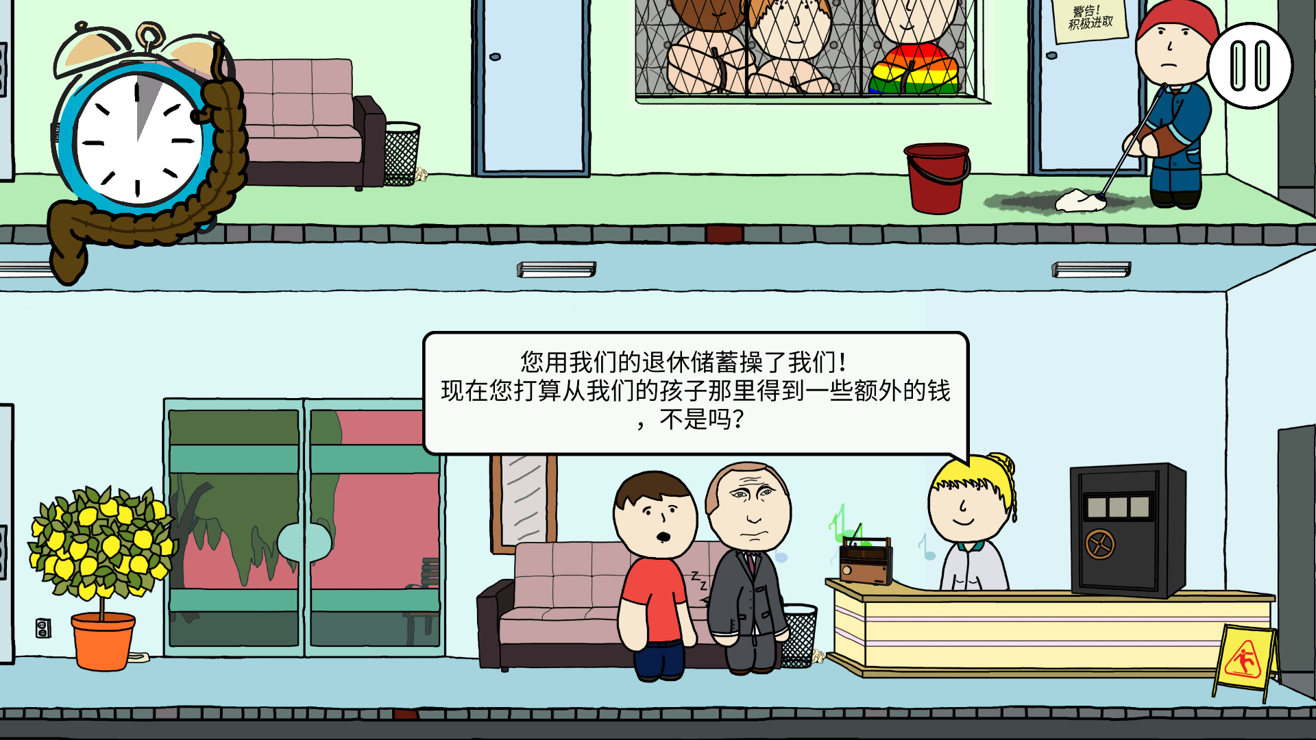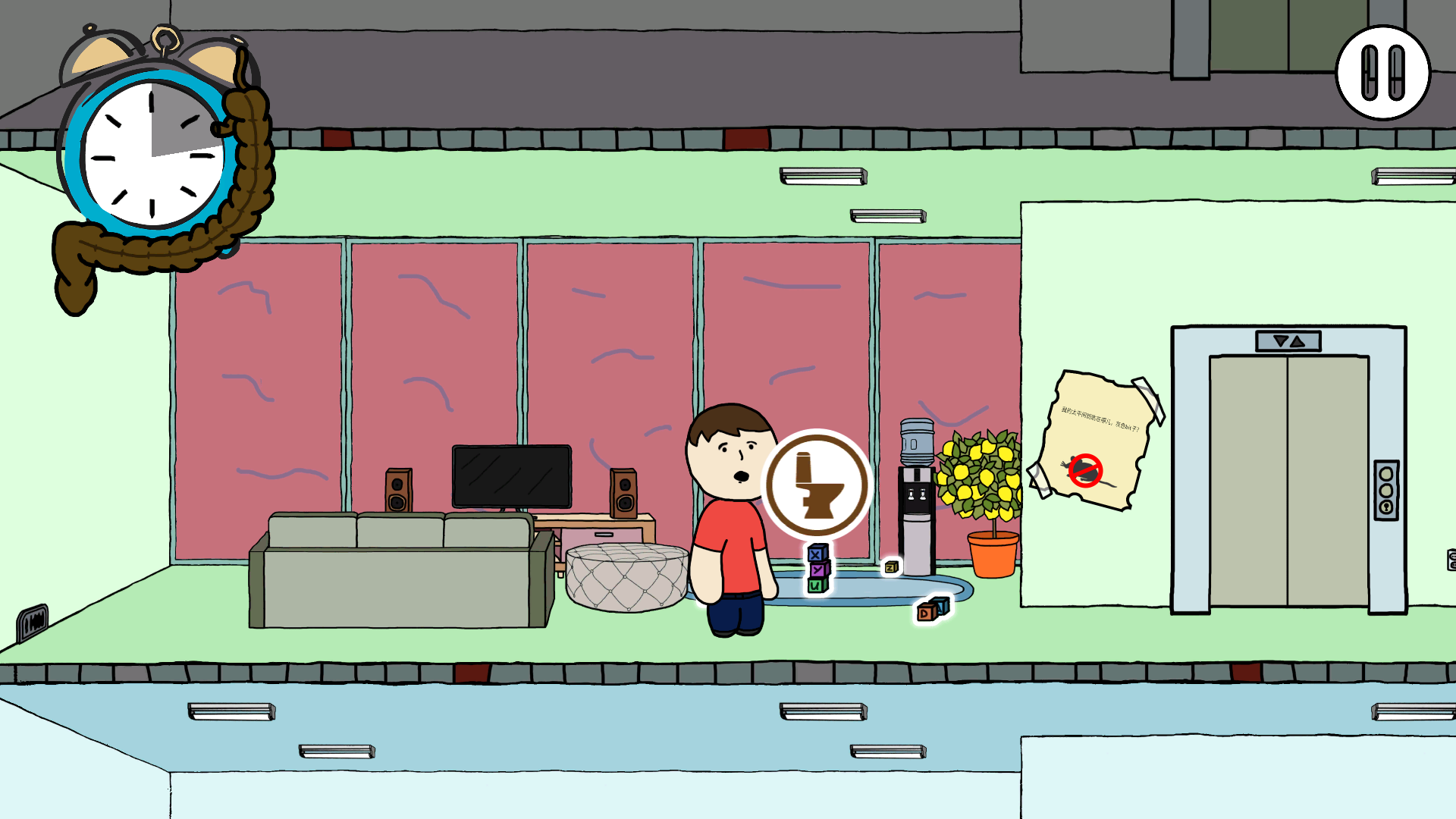 7、时刻注意左上角的时钟,黑色区域装满后你就会在大庭广众之下大便。