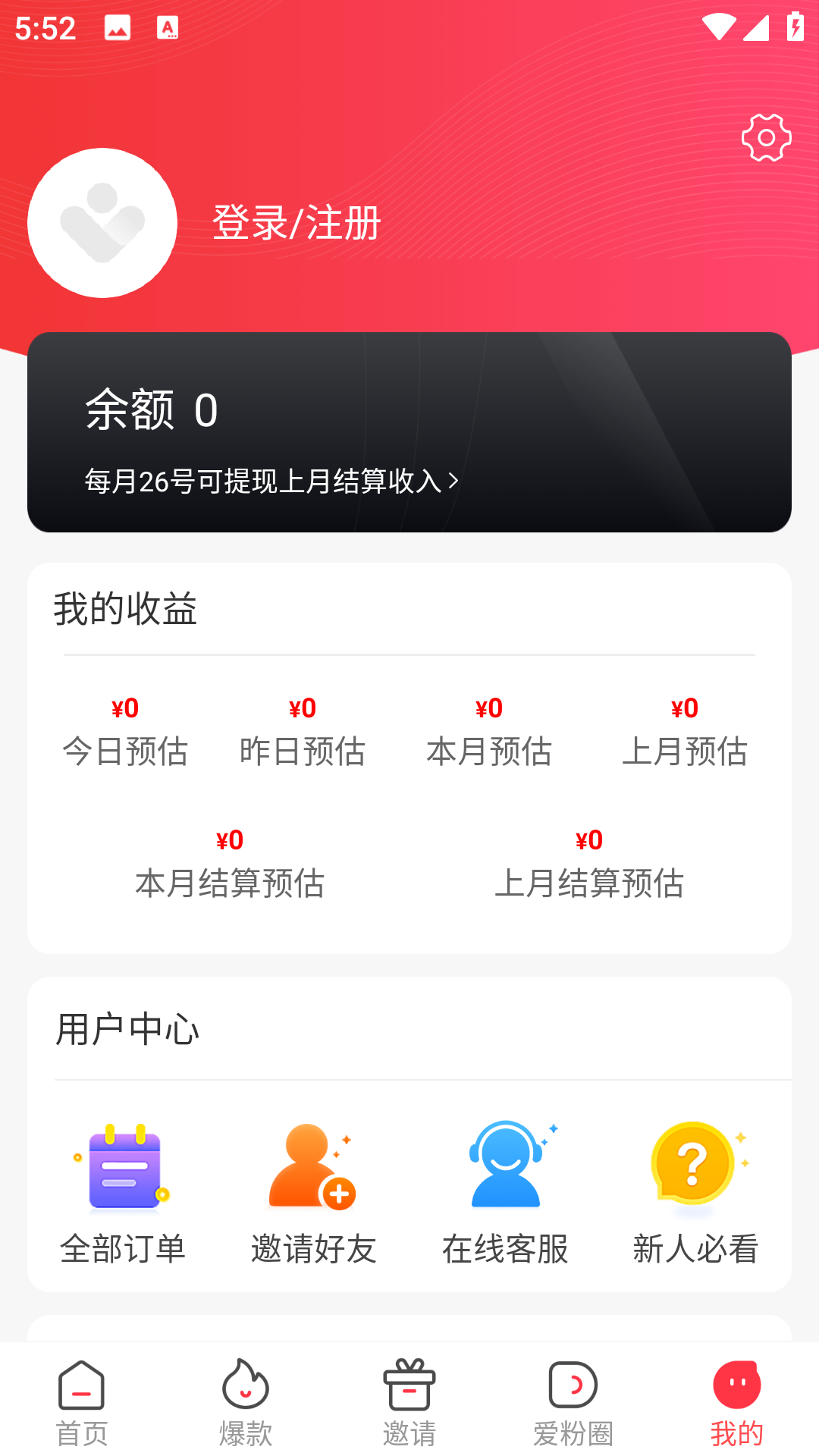 5、最后我的界面中,登录后可以看到你的所有具体收益情况和订单信息。