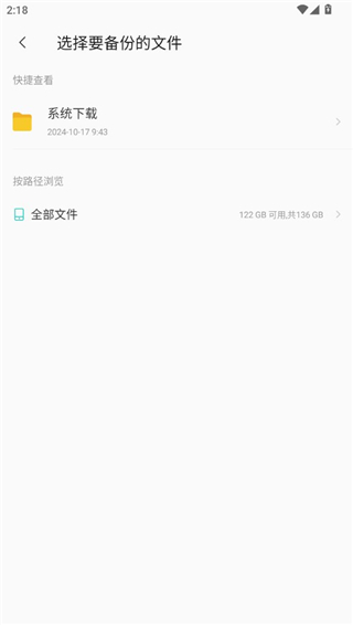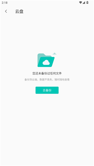 2、进入云盘,小编没有备份任何文件所以这里是空的,点击去备份就会跳转到文件夹页面,在这里选择需要备份的文件