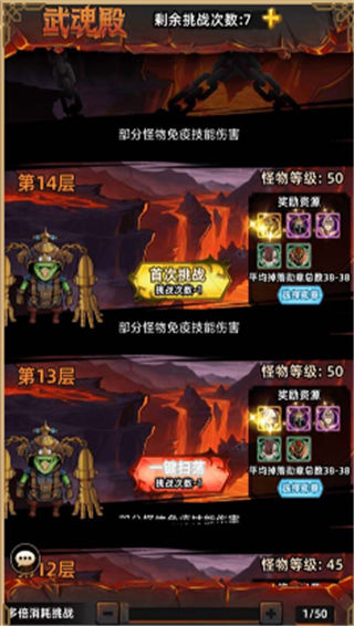 通关1-3boss关解锁的玩家可通过挑战武法魂殿获得大量英雄勋章用于英雄进化升星,武法魂殿等级越高、勋章数量越多。