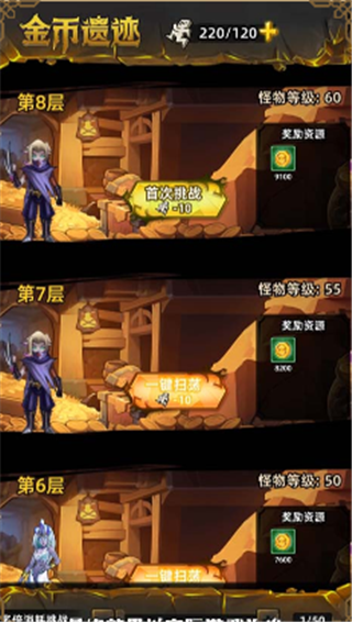 金币遗迹通关2-1boss关解锁的玩家可通过挑战金币透迹获得大量金币,金币遗迹等级越高、金币数量越多,金币在游戏中是消耗量极大的养成资源,占据很重要的地位