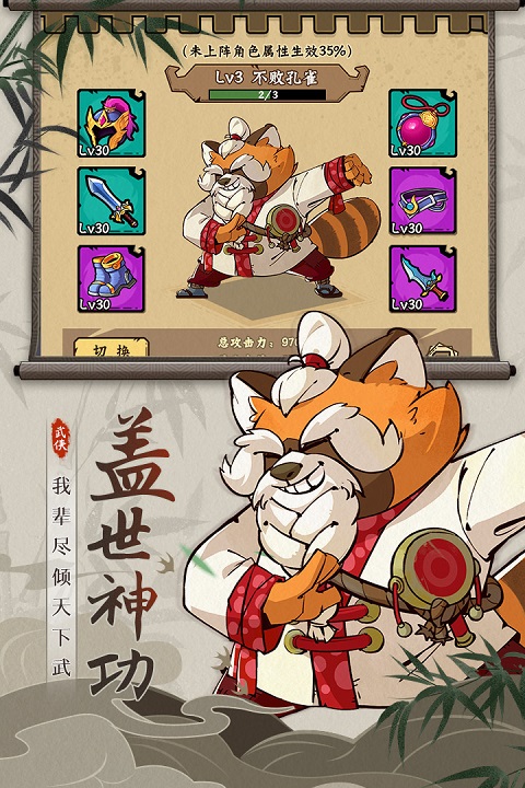 调皮小动物手游正版是一款国漫画风的肉鸽题材放置挂机策略手游,游戏采用Q萌的国漫画风,每一位角色都是由国内顶尖画师亲自绘制,其充满了古代武侠元素,为玩家带来一个全新的武侠游戏体验。游戏中有着许多的小动物角色,其中有剑客青龙、功夫熊猫、侠士狐狸、扫地僧企鹅等,玩家可以通过招募抽卡、关卡任务、限时活动等方式收集这些独特可爱的小动物们。