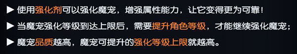 魔宠强化需要强化药剂,而强化药剂无法在背包进行查看,但是我们可以在魔宠系统里进行强化的时候得到对应的剩余数量。强化等级越高,初始属性成长得越高。而强化和成长的关系由魔宠资质决定。强化药剂的消耗和魔宠等级有关,和魔宠资质、星级无关。