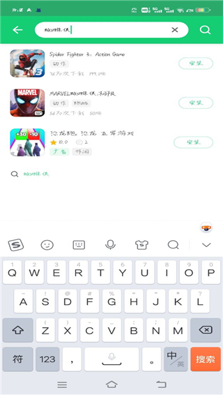 3、以蜘蛛侠为例,软件会将有关的游戏全部推送出来,选择自己想要的游戏即可