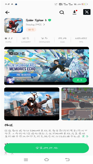 4、点击游戏可以进入详情页面,这里有游戏的详细介绍,点击下方的下载,等待安装完成即可体验游戏