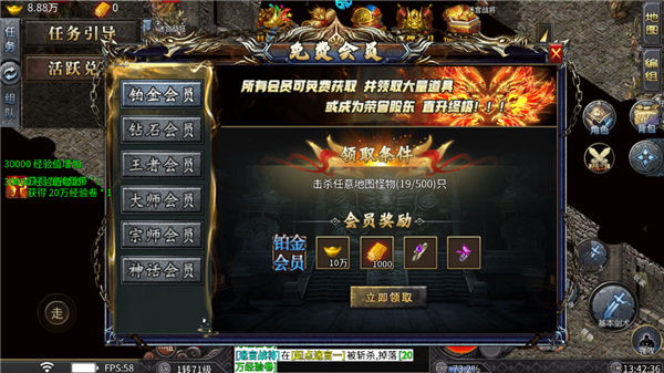 6、要是打死了足够多的怪物,还能领取会员福利,里面可能有好东西等着我们。
