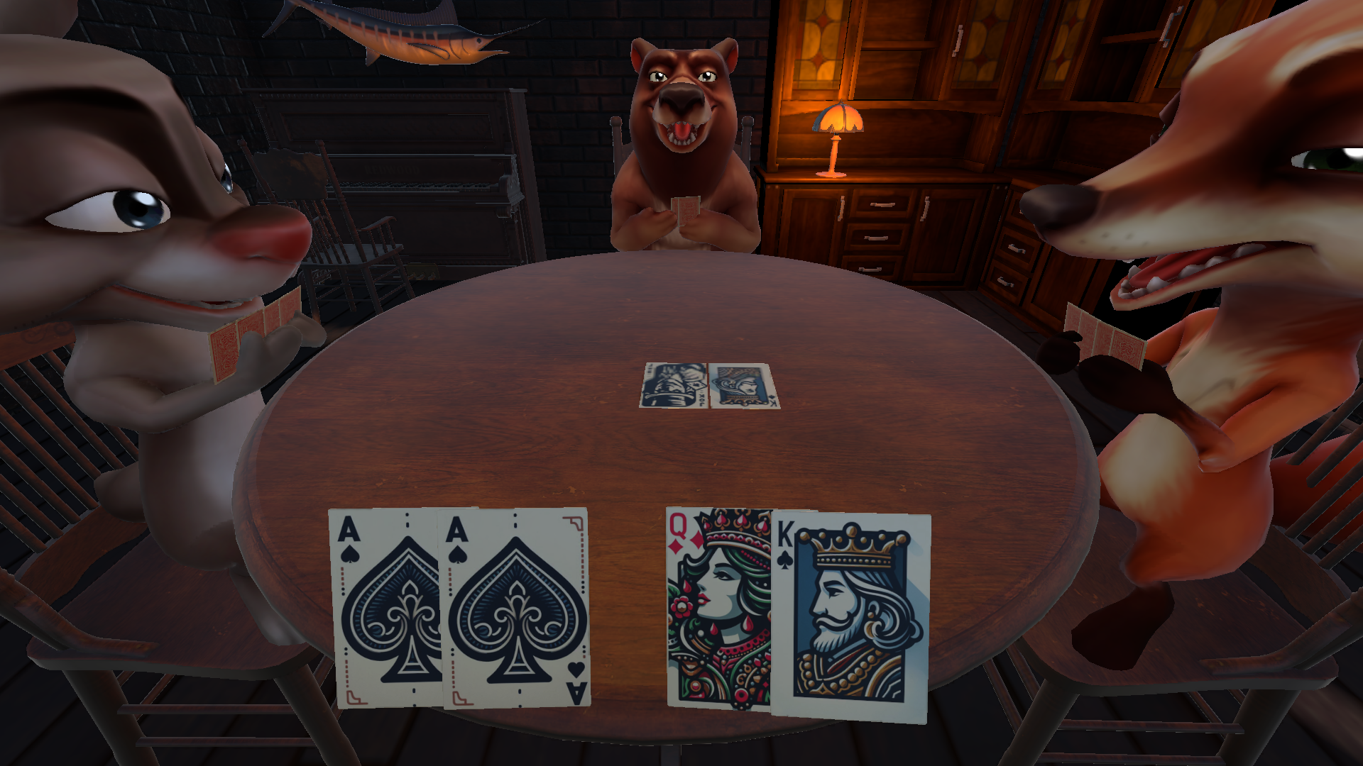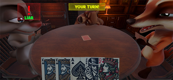 在骗子酒馆游戏中,你可以体验到扑克牌与扔骰子两种趣味玩法,在扑克牌环节,你需要轮流出牌并宣称牌面数值,同时试着用谎言迷惑对手,一旦成功骗过对方,你就能占据上风,但若被识破,则会进行俄罗斯轮盘射击,若射击时没有子弹,则继续进行下一回合,扔骰子环节也是同理。这两种玩法都极具策略性和挑战性,让玩家在享受游戏的同时,也能不断提升自己的策略思维和规划能力。