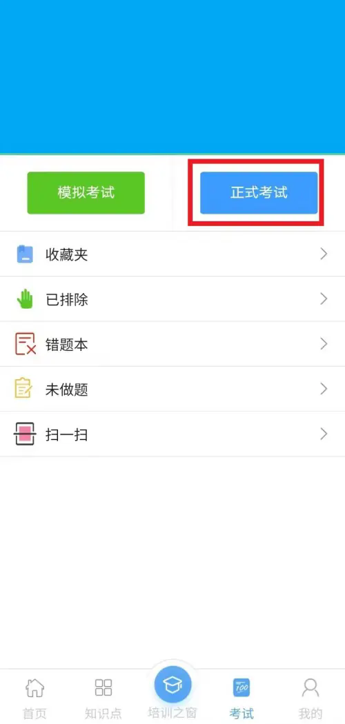 3、进了个人主页后,点那个“开始正式考试”的按钮就行啦。