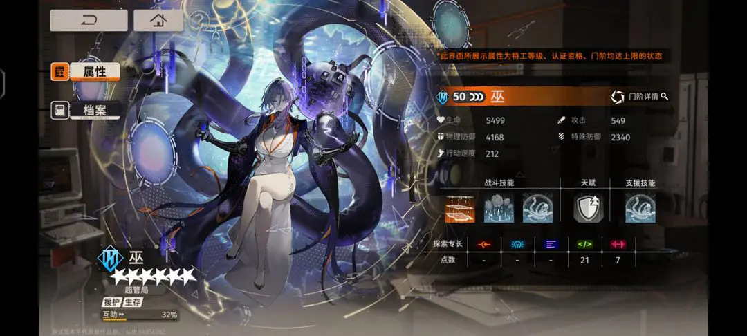 巫是目前最肉的六星角色,不仅能降低对面攻击,还能提高己方防御,援护或直接受到攻击还会提高双抗和免伤,单体防御非常不错,保群就差很多了,没特殊功能很容易被替换掉,角色有本体即可,卡带建议日冕协议增加生命和援护挨打概率治疗