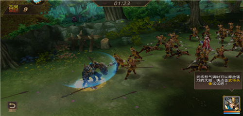 7、在战斗的过程中,当武将怒气满时可以释放强力的大招,点击武将头像就可以释放。