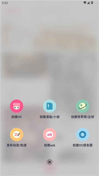 2、选择创作的类型,创建oc,创建漫画/小说,创建ask等