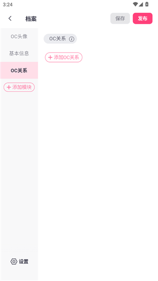 5、添加oc关系,可以将多个oc建立联系,完成之后点击右上角的发布即可
