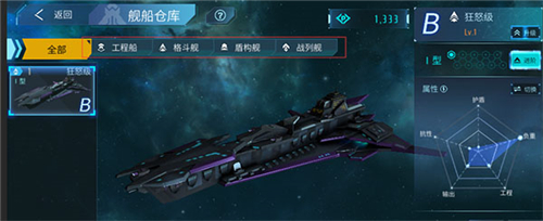 图中是一艘B级的船,更高级别的船代表它有更好的成长性,更高级的舰船可以在PVE和签到中获得,或者自己用图纸进行制造