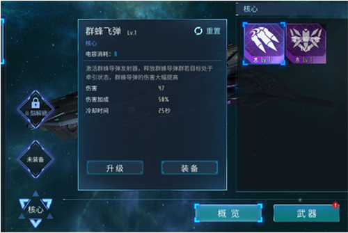 装备或者升级核心,可以让舰船在PVE里的核心技能更强(仅对PVE生效)