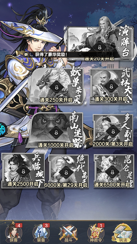 1、无论是点击屏幕攻击还是放置侠客自动攻击,操作都非常简单。2、有许多不同技能的侠客供你选择和培养,每个侠客都有独特的战斗方式和特点。