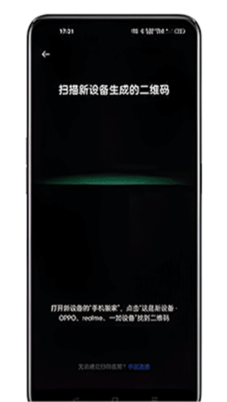 2、在旧设备上安装并打开软件,选择“这是旧设备”,随后就会进入扫码界面,扫描二维码就行连接