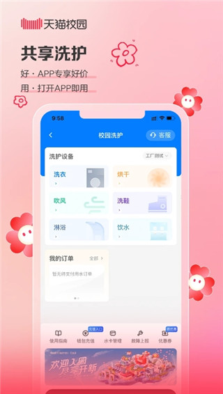 4、提供校内的共享洗衣和烘干服务,随时随地安心洗,享受衣物焕然一新,校园生活更轻松