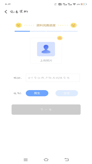 1、打开软件,在这里登录或是注册账号,注册账号时需要完善用户资料