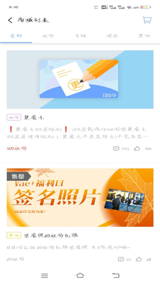 此外在vae+中,还加入了商城版块,这里有着众多与许嵩相关的商品,专辑,周边,签名照等,不过这些商品都不是用钱购买的,而是使用积分兑换,积分可以通过参加线下/线上活动,提升用户的等级,完成每日任务等获得,每周的人气榜与热榜也可以获得一定的积分奖励。