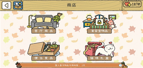 3、商店有四种类型,客厅商品,育婴室物品,便当食品和猫咪礼盒,点击进入对应的商店