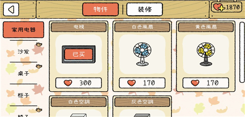 3、各种不同的家具可以尽情的去购买解锁,装饰自己的甜蜜小家