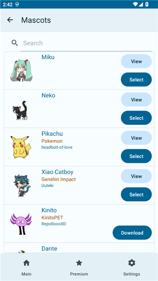 2、在mascots中为用户带来了众多桌宠角色,每一个都可以进行选择