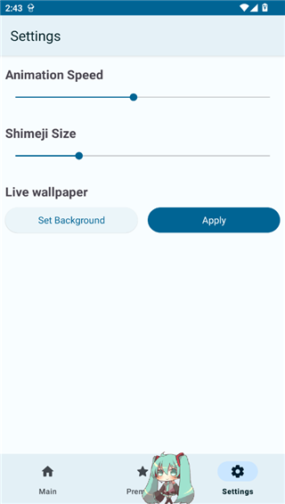 想不想在手机桌面上养几个小宠物呢,快来试试这款shimeji手机版吧,这是一款专门为安卓手机用户打造的桌宠软件,通过这个软件,用户可以在手机桌面上养一个或多个宠物,宠物最多可以同时存在六个。软件为用户带来了众多桌宠可以选择,如小初音,黑猫,皮卡丘,来自太空杀中的各种角色,暴漫角色,兔子,日向雏田,宇智波佐助等,这些角色全部都是免费的,用户下载角色之后就可以查看角色的各种动作,如果喜欢就可以直接添加,需要注意的是,使用之前需要开启悬浮窗权限。此外在shimeji中,用户可以在Setting设置页面中来控制桌宠的速度和大小,不过需要注意的是,桌宠太大会挡住用户的视线,此外,软件中还有着壁纸功能,用户可以在这里更换手机的壁纸。