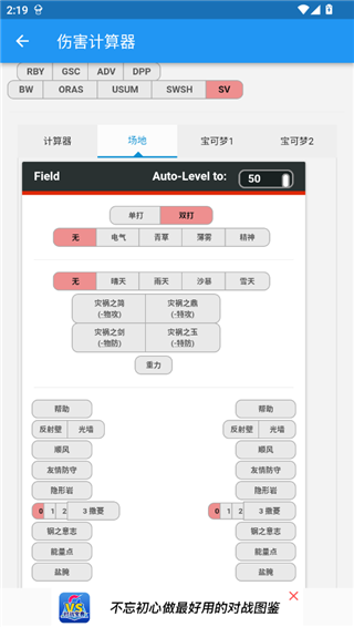 4、填写对战双方宝可梦的信息,如属性,等级,性格,道具等,完成之后就可以看到相关的数据了