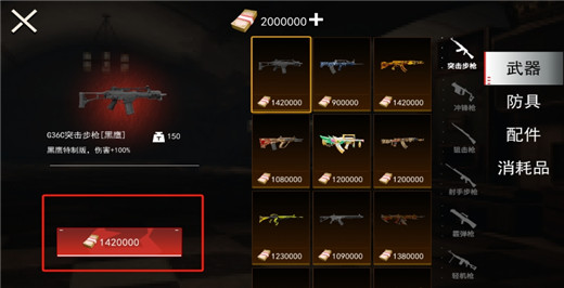 2、这里可以看到丰富的武器类型、其中有突击步枪、狙击枪、射手步枪等,每一款武器都有不同的价格