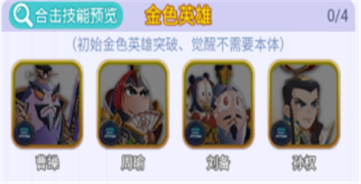 煮酒论英雄:曹操+刘备,使用倚天剑攻击全体敌人,造成攻击120%的物理伤害,使用后伤害增加15%持续2回合(刘备阵亡后为5%),30%几率再发动一次大招,9%发动第三次(额外大招不消耗怒气)